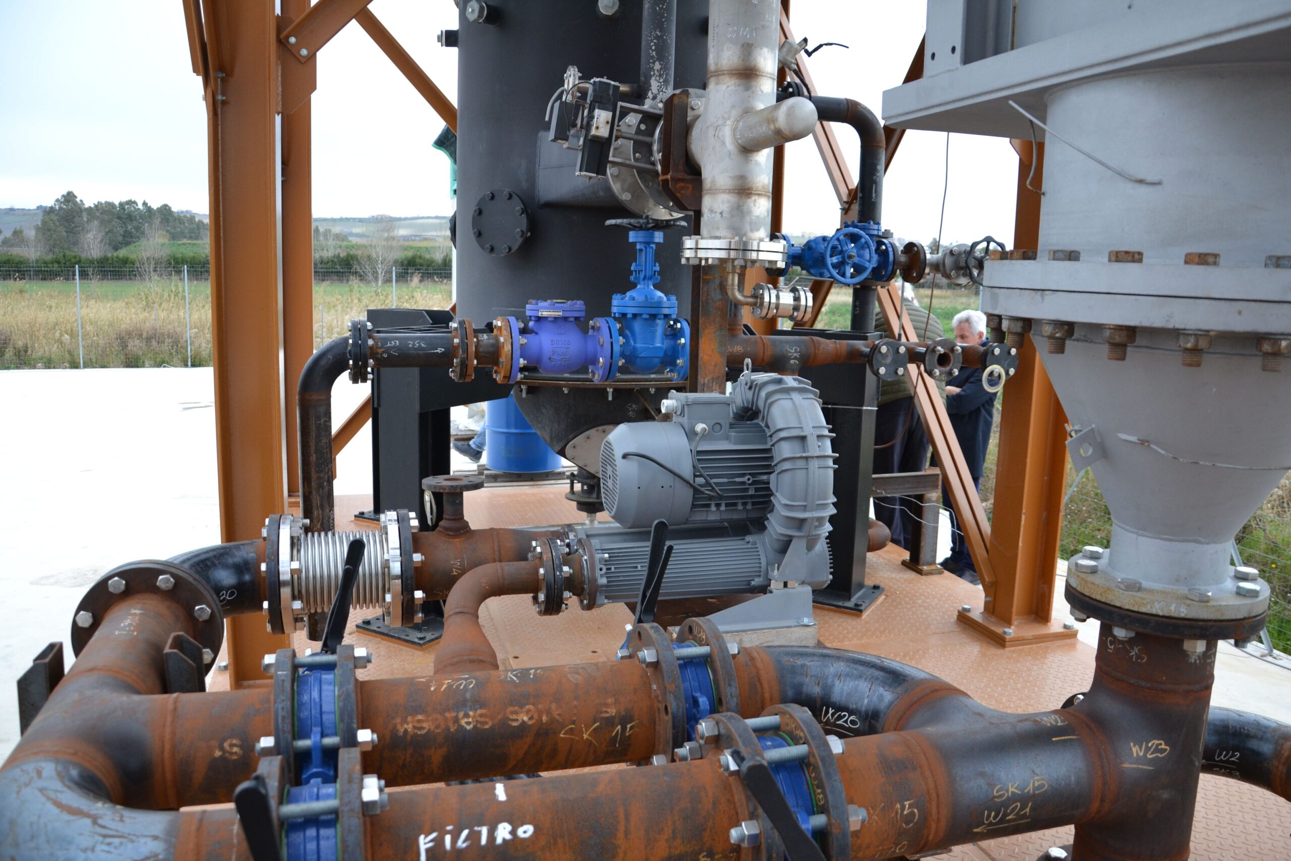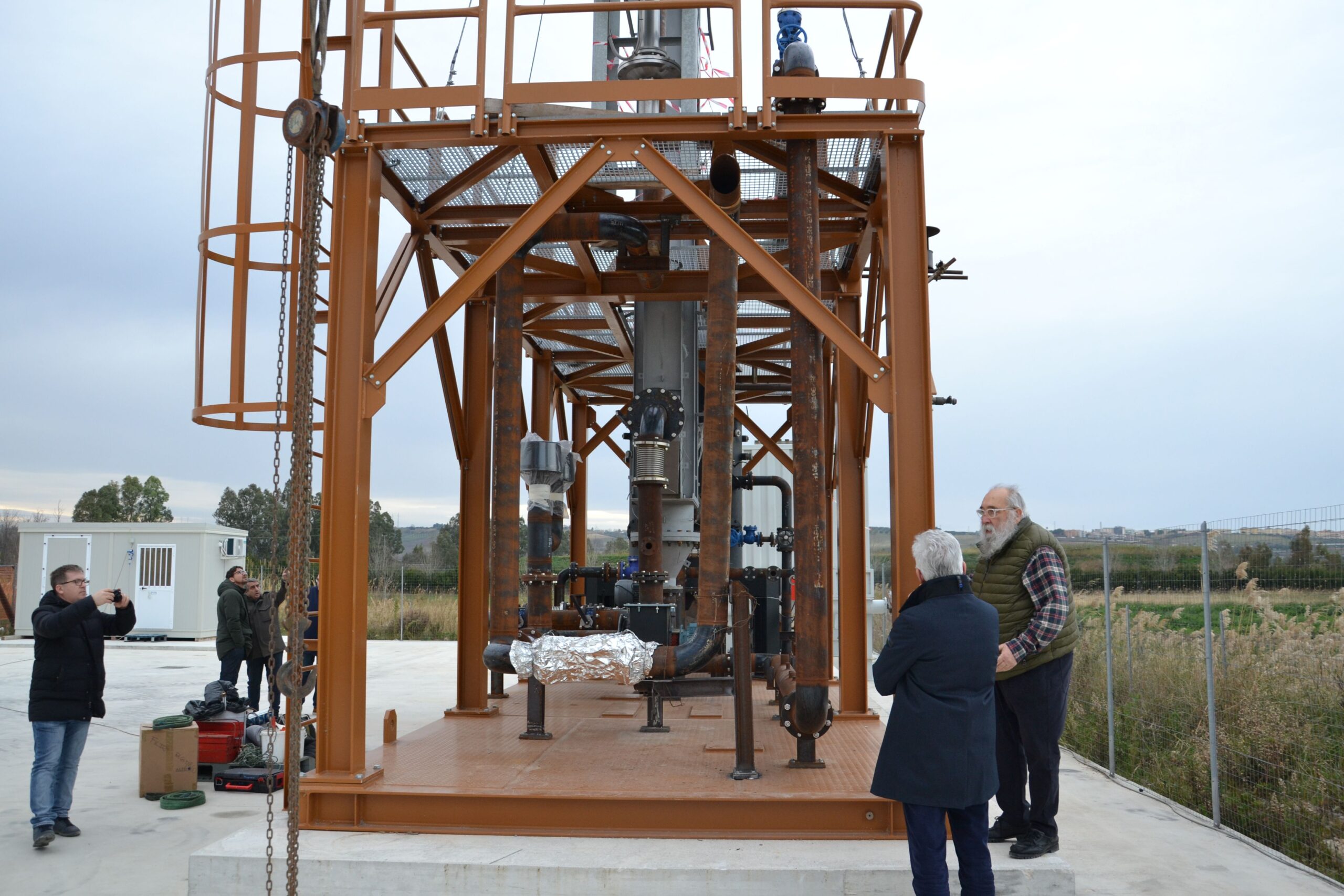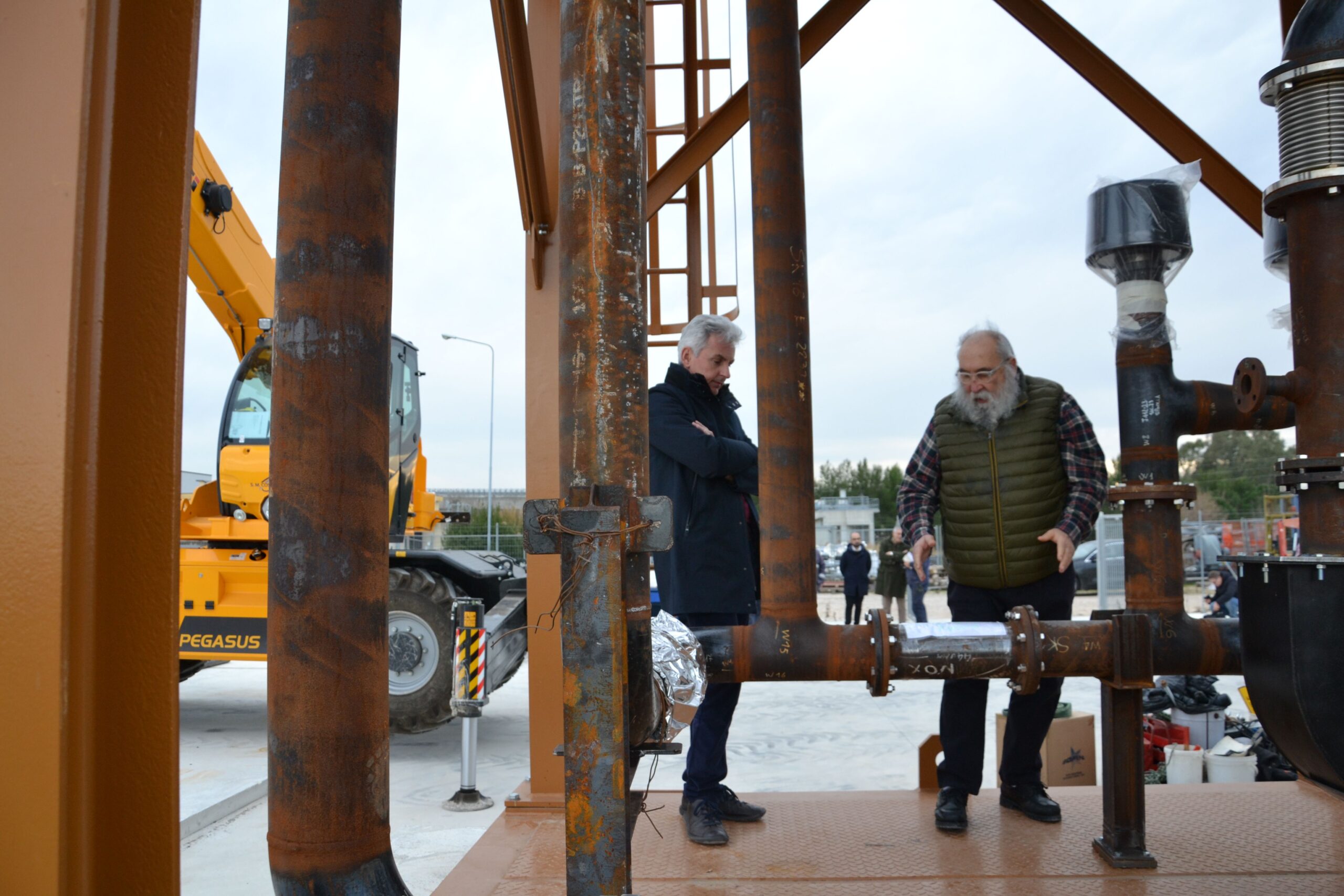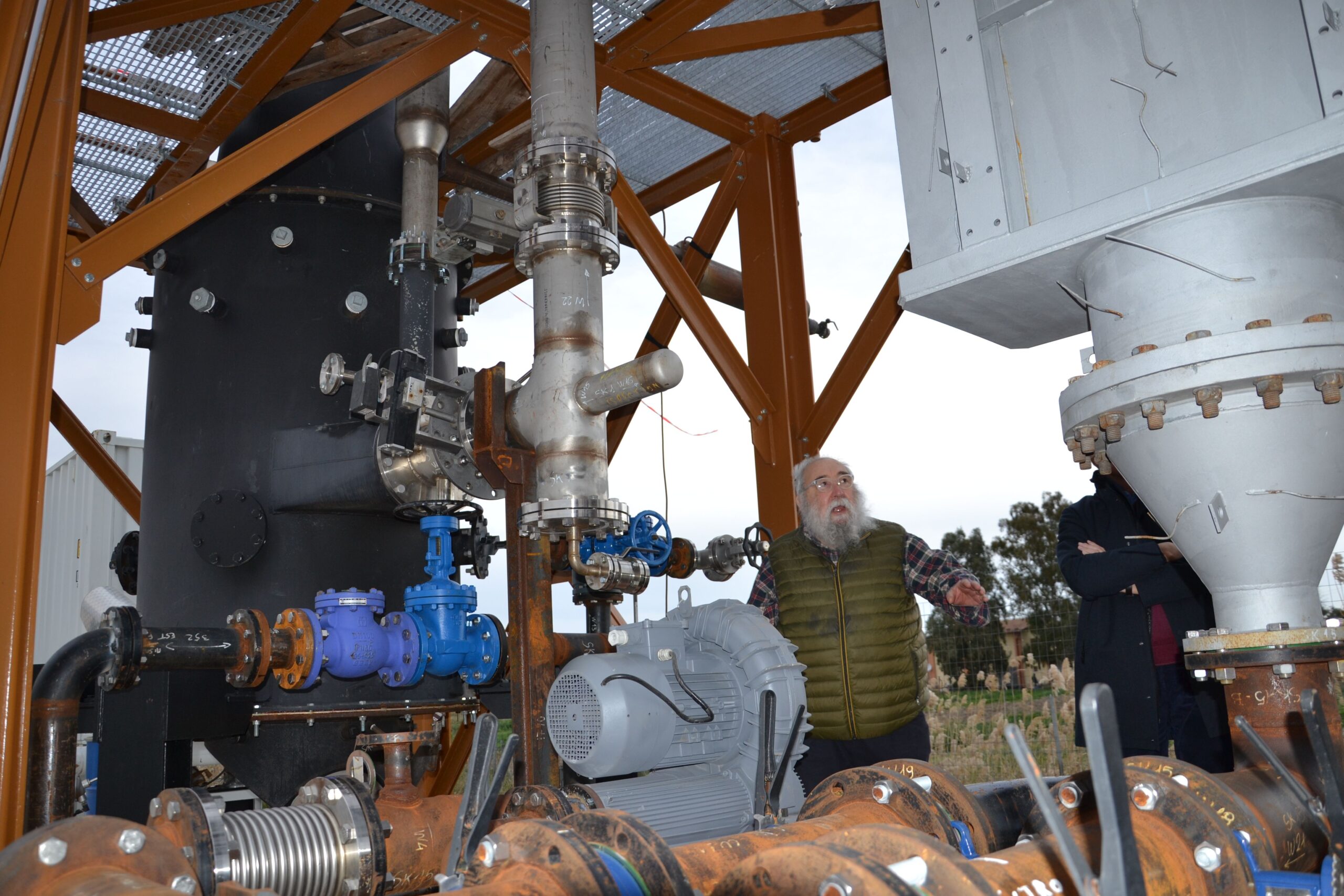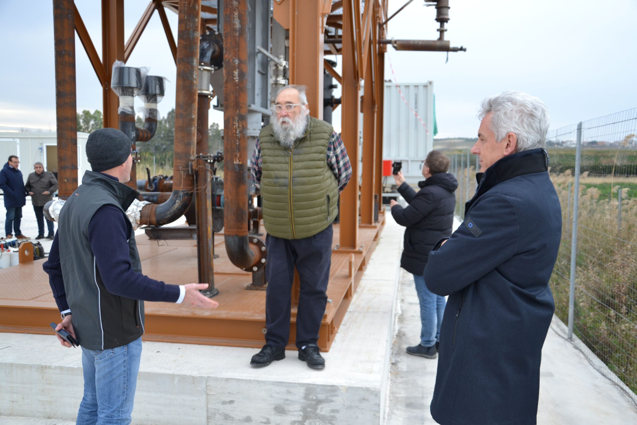 Il 9 settembre 2024 i partner del progetto LIFE AUGIA hanno incontrato l’Ing. S. Pagni, delegato dalla Commissione Europea a verificare il progetto presso la sede del Consorzio per lo Sviluppo Industriale della Valle del Biferno (C.O.S.I.B.) che ospita l’impianto. Nella prima parte dell’incontro, il prof. Piacentino ha spiegato all’Ing. Pagni le varie parti dell’impianto di gassificazione e le loro funzioni